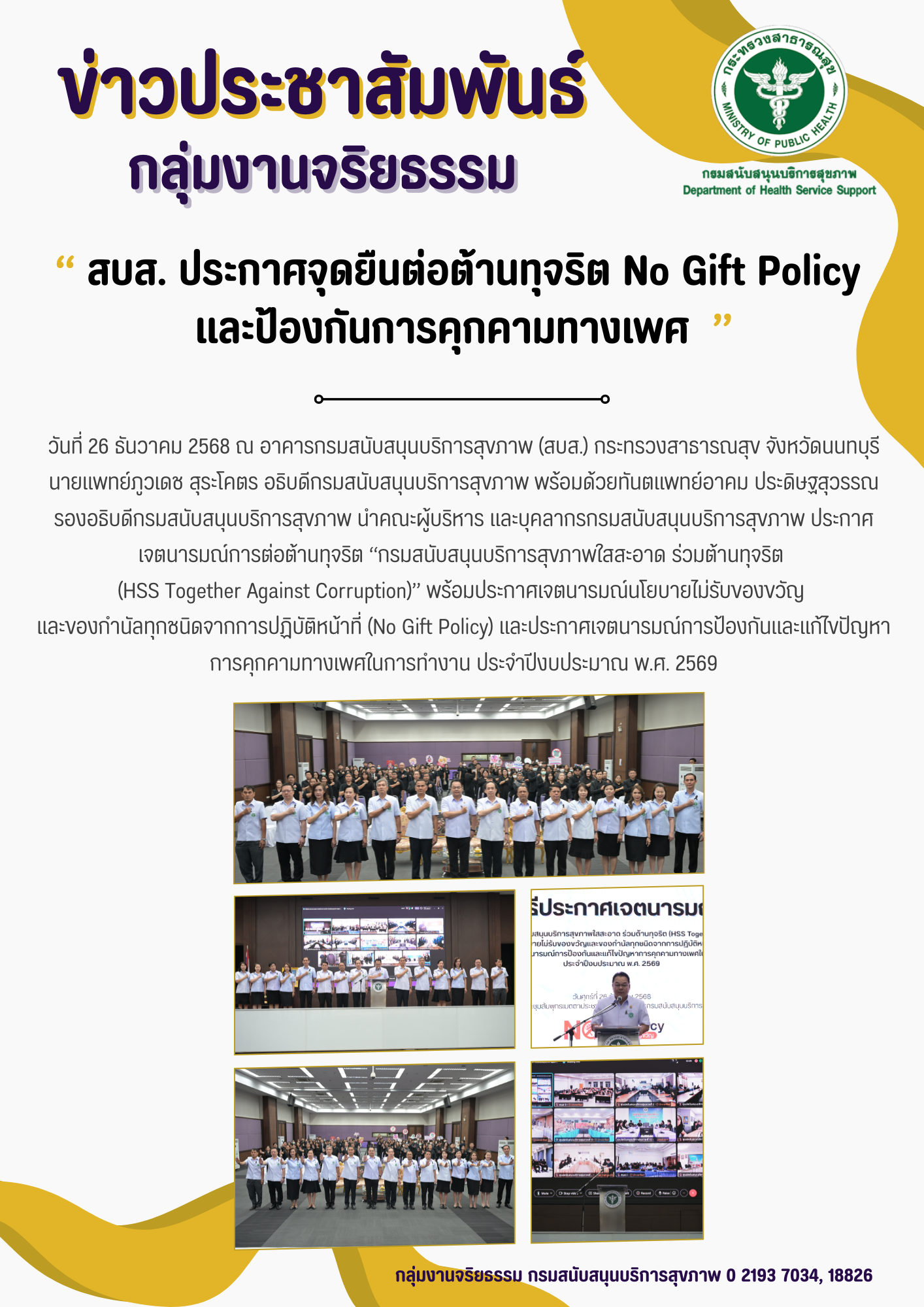 กรม สบส. ร่วมประกาศเจตนารมณ์ต่อต้านทุจริต เนื่องในพิธีประกาศเจตนารมณ์การต่อต้านการทุจริตของกระทรวงสาธารณสุข ภายใต้เเนวคิ...