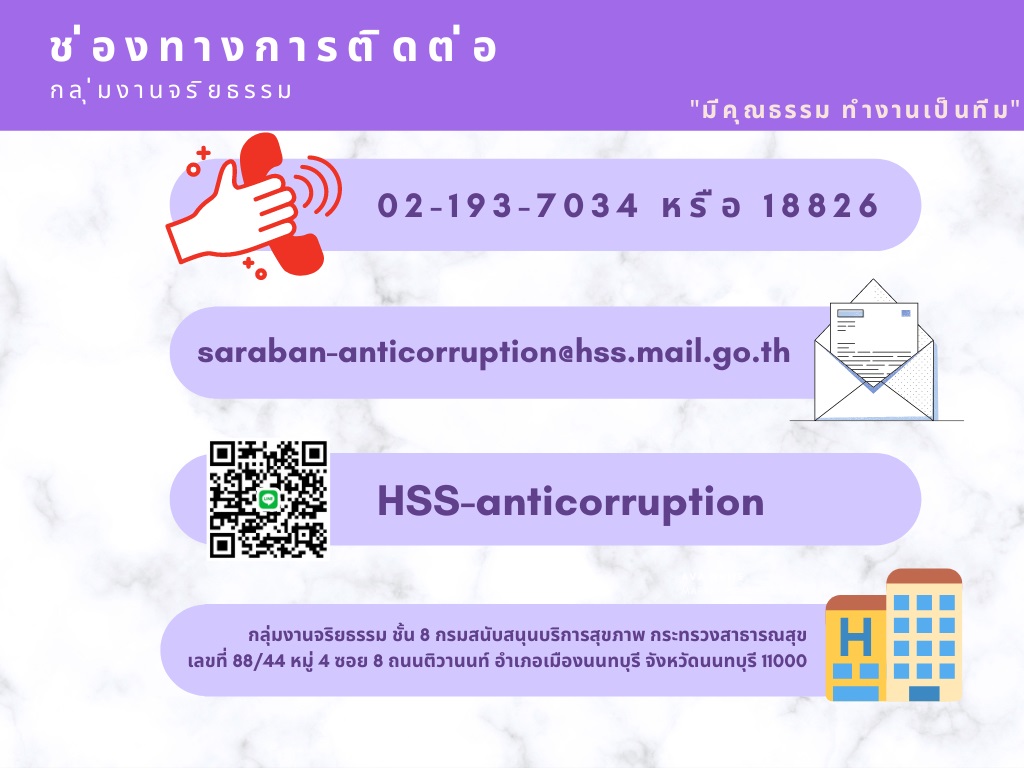 Call Center โทร 02-193-7034 อีเมล์ : anticorruption.hss@gmail.com